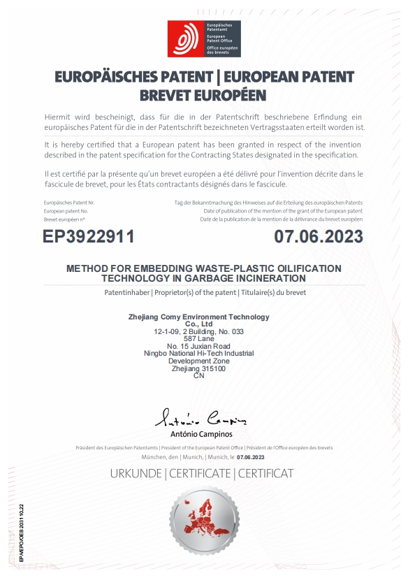 Plastic to Pyrolysis Oil (COMY PTO™)